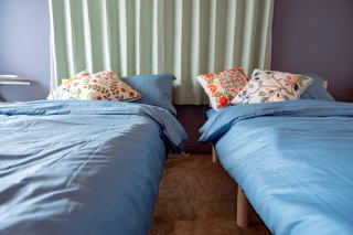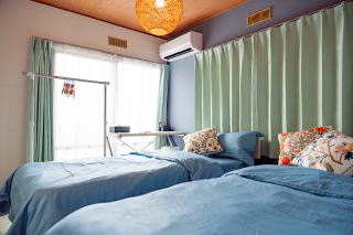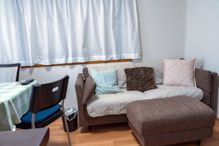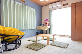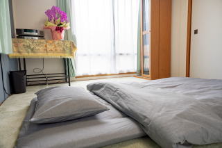 南向きのベランダと東向きの窓があります。お布団×3組。BOSEのCDプレーヤーあり。